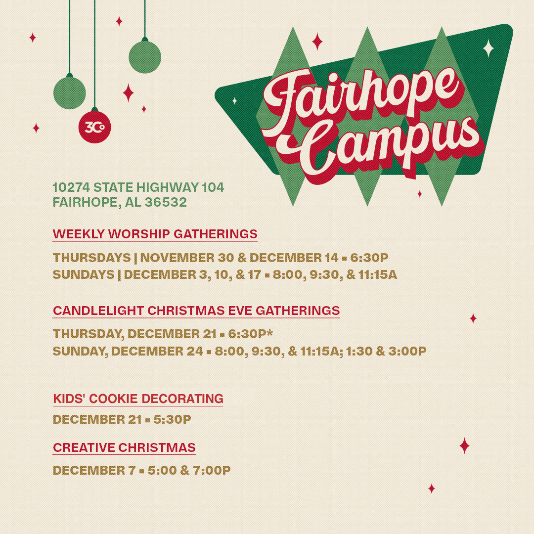 Select your campus to learn about gatherings, participate in Christmas initiatives, and invite your friends.